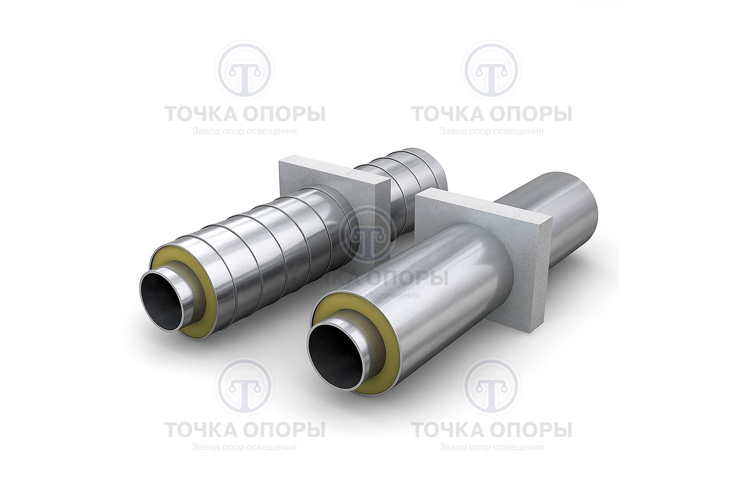 | Ø стальной трубы, мм | Условный проход, мм | Тип 1: Ø ПЭ оболочки, мм | Тип 1: Ø ОЦ оболочки, мм | Тип 2: Ø ПЭ оболочки, мм | Тип 2: Ø ОЦ оболочки, мм | Длина трубоэлемента, мм | Габарит по высоте, мм |